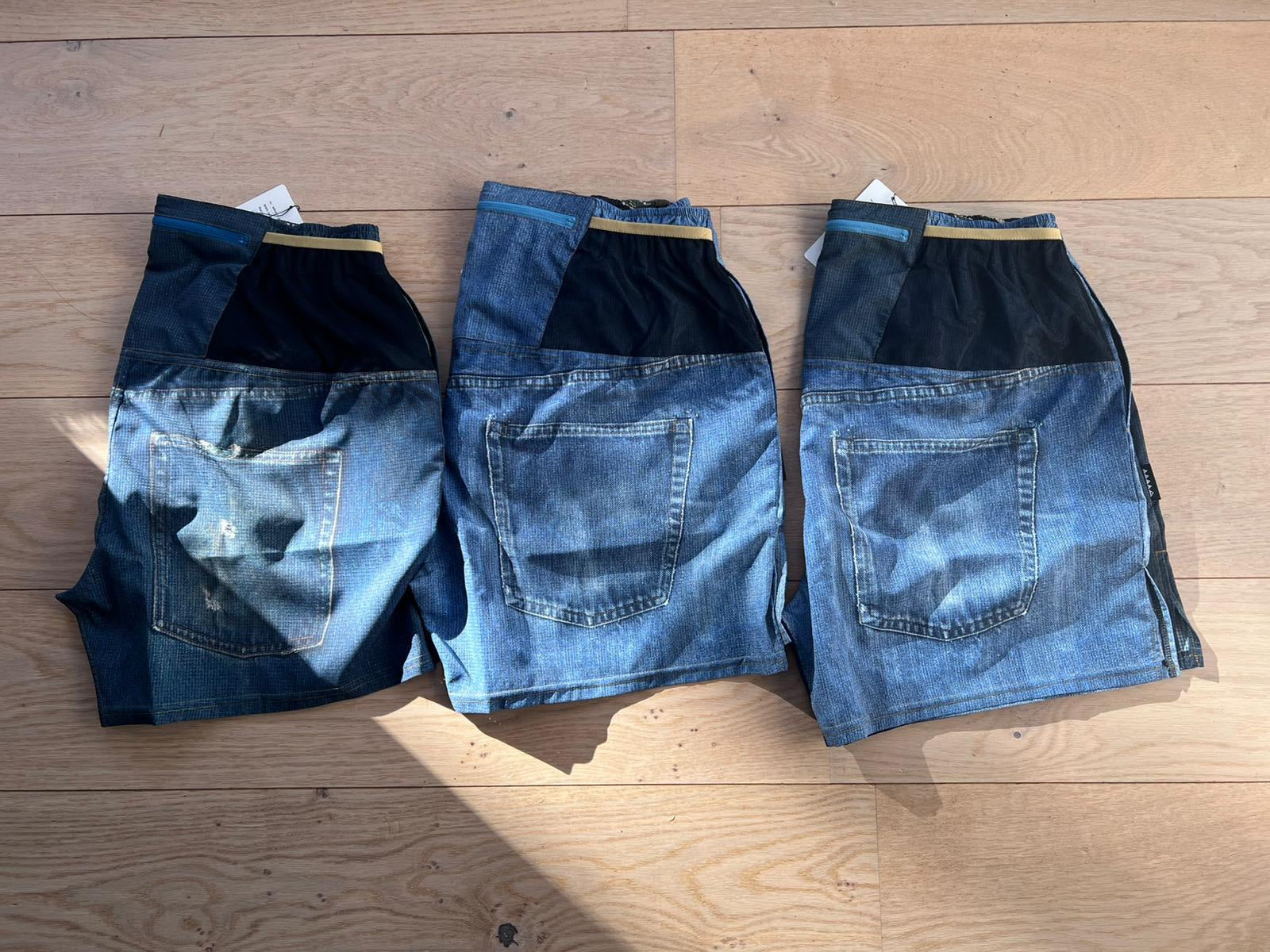 Un classique du MMA. Ce short de course arbore un imprimé denim vintage des années 60 et 70 et possède cinq poches pour ranger smartphones et accessoires.