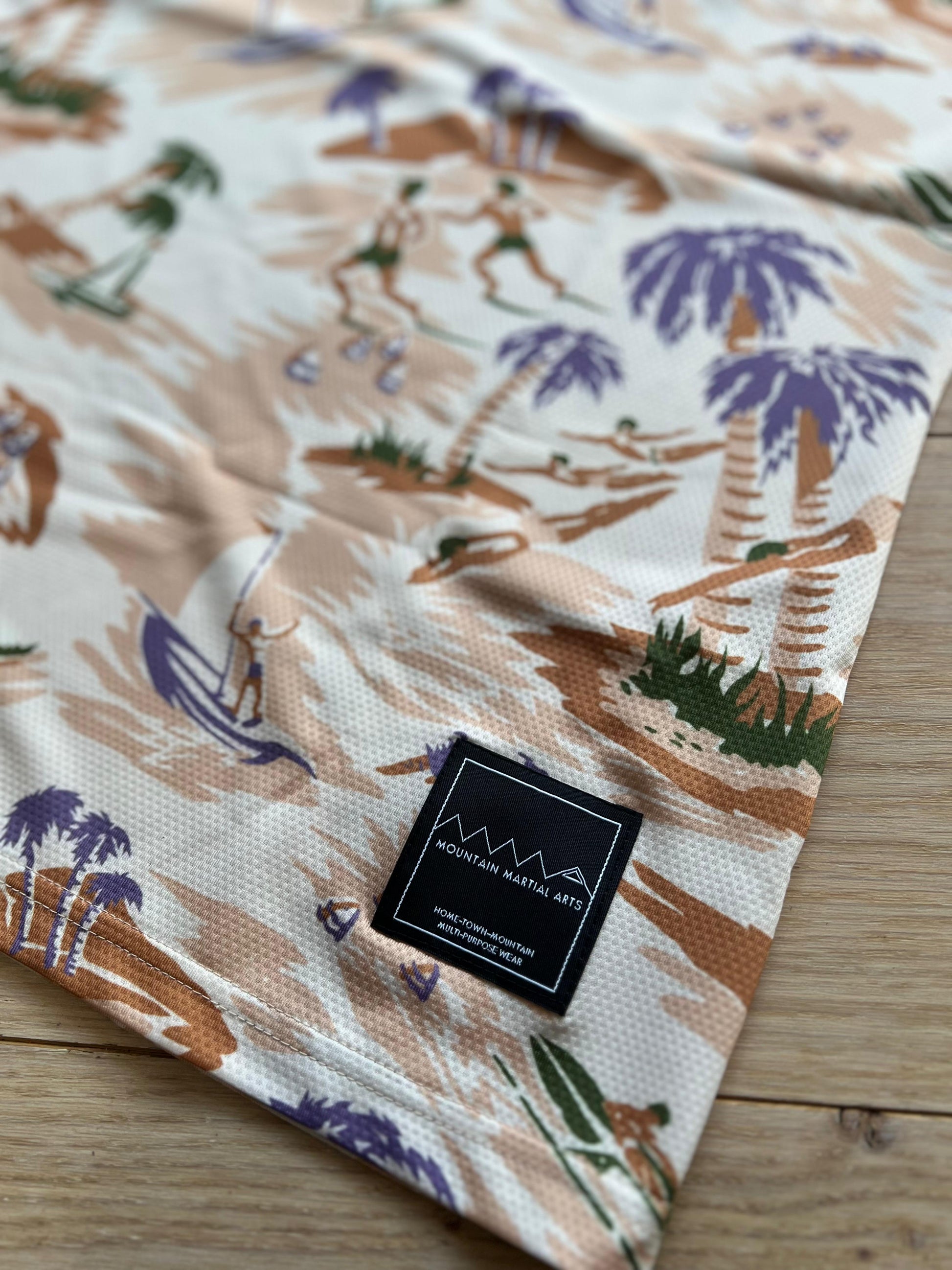 Ce haut polyvalent pour femme arbore un imprimé intégral original inspiré des chemises hawaïennes vintage.